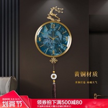 New Chinese-style copper clock wall clock living room home fashion Chinese style creative light luxury hanging watch swing clock Wall