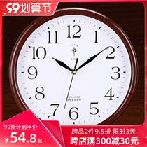 Bawang clock Chinese living room wall clock creative simple European wood grain electronic clock Chinese style mute quartz clock