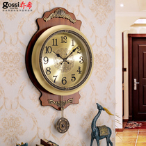 Pure Copper European watch wall clock Living room household clock American simple pastoral decoration Swing retro large hanging watch