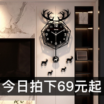 Watch light luxury wall clock Living room creative deer decorative wall clock wall clock New Chinese household fashion simple hanging watch