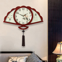 Chinese style living room Chinese wall clock mute creative bedroom fan-shaped clock Large vintage classical art wall clock