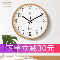 Polaris solid wood electric wave wall clock living room silent quartz clock simple beech wood clock Japanese home large Wall watch