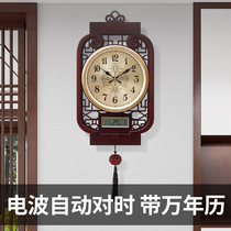 Lisheng new Chinese style solid wood wall clock living room silent clock decoration home atmospheric radio wave clock perpetual calendar wall watch