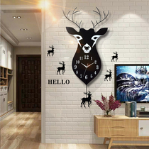 Kangba Silk Nordic Deer head watch wall clock Living room household fashion personality Quartz clock Atmospheric decoration Silent clock