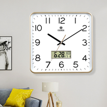 Bawang clock living room silent wall clock perpetual calendar clock modern simple hanging table square home wall quartz clock