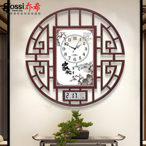 New Chinese perpetual calendar radio clock Chinese style clock clock clock living room Fashion Home wall watch atmospheric silent round