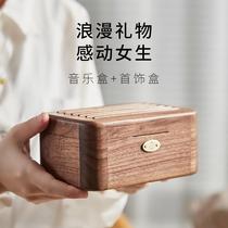Solid wood jewelry box Music box Music box Creative girls birthday gifts boys children DIY custom lettering