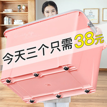 Thickened Containing Box Plastic large Number of clothes Clothing Basket Moving Finishing Box Home With Pulley Storage Box Glue Case
