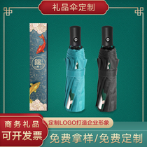 Blue Rain Encounter Water Discoloration Fully Automatic Folding Umbrella Custom Logo advertising umbrella brocade carp Opening gift box suit lettering