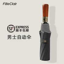 Umbrella Men Fully Automatic High-end Business Gentleman Wooden Handle Folding Umbrella High Face Value Men Boys Automatic Folding Big Numbers