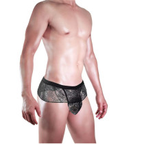 Sexy lace men's sexy underwear thong hollow U convex bag low waist breathable temptation transparent briefs