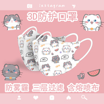 3D three-dimensional mask printing English short cartoon cute blue cat cute adult three-layer mouth and nose mask thin breathable female summer