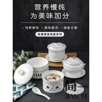 Jingdezhen healthy bone porcelain water stew Cup Bird's Nest seasoning tank ceramic water insulation with lid soup pot stew cup pure white