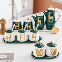Nordic household seasoning combination set kitchen seasoning jar ceramic seasoning bottle oil salt sauce vinegar full set of seasoning cans