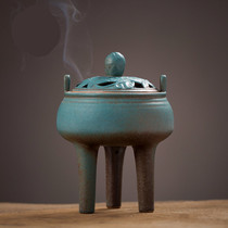 Ceramic household plate incense burner Air purification agarwood incense burner Dedicated three-legged high-legged incense burner Home large ornaments