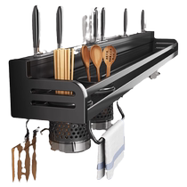 Kitchen Hook-Free Hanging Rod Kitchen Shelving Spoon Pan Scoop Spoon Rack Space Aluminum Row Hook Wall-mounted Storage