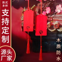 Wooden Plotter Wishing Cards Blessing Hanging Cards Wish Card Hanging Card Temples Wish Red Rope List Customized Contents