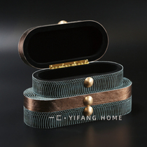 Yiyi modern light luxury green leather splicing jewelry box model bedroom dressing room dressing table ornaments