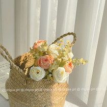 Creative Rose Floral Swing room Living Room Fake Flower Furnishing with light and luxurious hand carrying flower basket suit table flower inserts