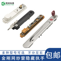 Window screen transmission handle short flat hide with key handle flat open yarn door handle fork lock diamond mesh window lock