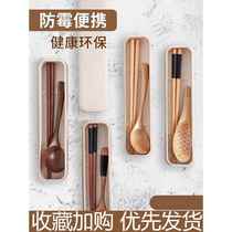 Japanese-style bamboo portable tableware Japanese-style chopsticks spoon fork student adult work travel take-out set
