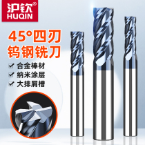 Huqin 45 degree end mill tungsten steel milling cutter 4-edge carbide milling cutter nano-coated CNC tool CNC tool