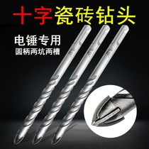 Special drill for ceramic tiles, impact drill, cross ceramic tile, glass triangle alloy drill, round handle, two pits and two grooves