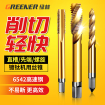 Green forest machine with screw tap high speed steel spiral plated titanium wire tapping stainless steel special first end straight groove silk m3m4m5m6m8