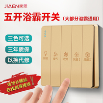 Jie Yuba switch five-open bathroom heater Golden switch toilet ventilation heating 5-in-one panel