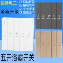 Delixi Yuba switch five-open flap waterproof cover universal bath exhaust fan lighting integrated five-in-one switch