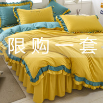 Little Red Book recommended bed skirt four-piece cotton cotton girl heart princess style bed linen quilt cover solid color bedding