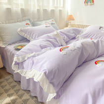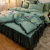 Small Red Book recommended Korean version of wide-sided four-piece cotton sheet quilt cover cotton princess style bed skirt quilt cover