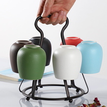 ins Nordic ceramic water set home creative living room simple teacup water cup 6 with cup holder tray
