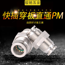 304 stainless steel partition joint pneumatic plate quick plug PM6 8 10 12 16 trachea quick docking valve