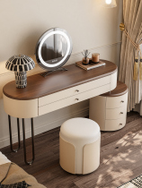 French retro dressing table black walnut modern simple bedroom small apartment saddle leather solid wood high-end dressing table