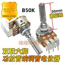 Double B50K B503 power amplifier audio potentiometer curved six-pin volume potentiometer switch long round flower shaft 30mm