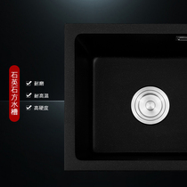Kitchen black quartz stone sink large single trough Granite Wash basin embedded basin dishwashing wash sink