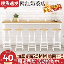 Net red milk tea shop high table and chair set against the wall bar household window table long table milk tea shop High Table Light