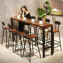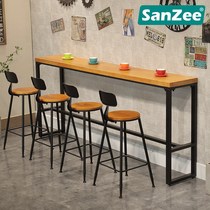 Narrow bar milk tea shop high table solid wood bar table and chair combination household iron balcony wall long table