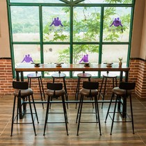 Iron wood bar table and chair balcony wall narrow table long table window sill milk tea shop cafe Leisure bar table