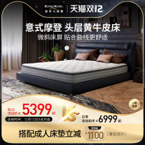 Nordic Italian leather bed modern simple double bed first layer cowhide high-end atmosphere light luxury minimalist master bedroom wedding bed