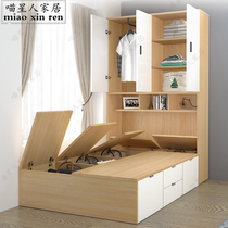 Nordic solid wood tatami bed overall custom combination wardrobe bed integrated small apartment storage bed 1 meter 2 children's bed
