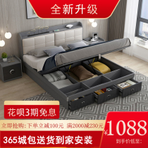 Storage bed Nordic small apartment 1 5 Master bedroom 1 meter 8 storage high box double bed one meter five modern simple bed