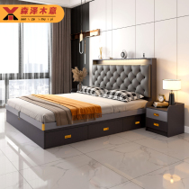Modern simple board bed 1 8m double bed Nordic small apartment high box bed storage bed 1 5 master bedroom storage bed