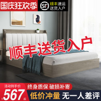 Bed Modern minimalist plate bed 1 8 m double bed master bedroom rental room simple solid wood bed 1 5 high Box storage bed