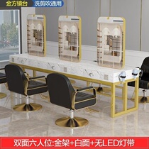 High-end fashion new barber shop mirror hair salon special double-sided floor mirror with light wall mirror table beauty shop mirror