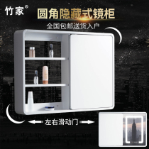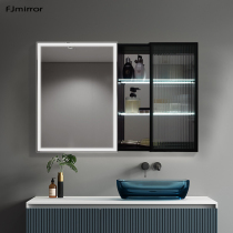 Solid wood concealed feng shui mirror cabinet minimalist toilet mirror push-pull type intelligent defogging with shelve hanging wall style