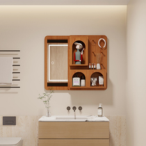 Solid wood bathroom mirror cabinet with light concealed toilet smart bathroom mirror hanging wall-style bathroom shelve mirror