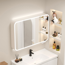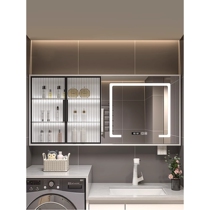Cream space aluminum smart mirror cabinet separate beauty back panel storage rack defogging paper hole bathroom wall hanging arc