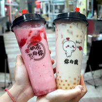 Milk tea cup disposable 90 caliber 420 500 600 700 net celebrity high permeability fruit tea juice blister cup